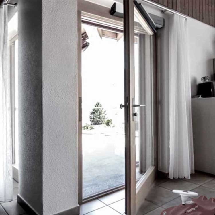 Gilgen FDC model wing-type circular door automations, which have a wide application range from standard room doors to 90 degree building entrance doors, offer high performance and comfort, manufactured with the highest quality materials subjected to various tests that meet the most specific European norms. The electromechanical automation unit, which operates extremely quietly, also provides convenience in practice thanks to its compact design and stylish design with stainless steel body. The system which is possible to install with all kinds of apparatuses in the existing doors offers a very rich range of connections between the engine unit and the wing (pushing, pulling or parallel pulling arm etc.).
